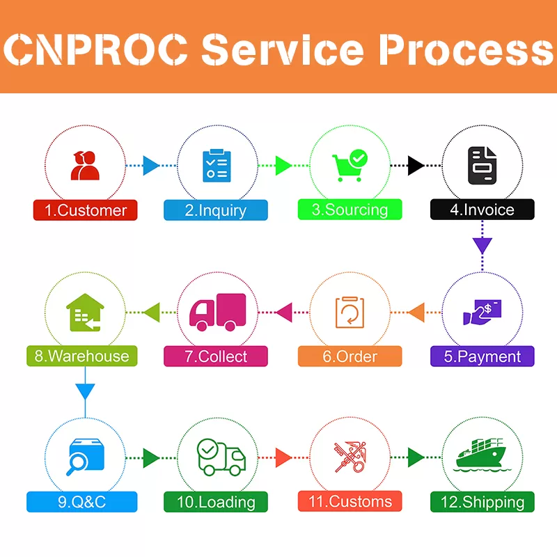 CNPROC has a strict procurement process. CNPROC selects reliable suppliers based on evaluations. During sourcing, CNPROC ensures materials or products meet its standards. CNPROC's team conducts inspections and quality control. There are strict procedures for invoicing, payment, and auditing. Each step from ordering to receiving goods is monitored. Warehouse management is orderly. And for customs clearance and shipping, CNPROC follows regulations and best practices.